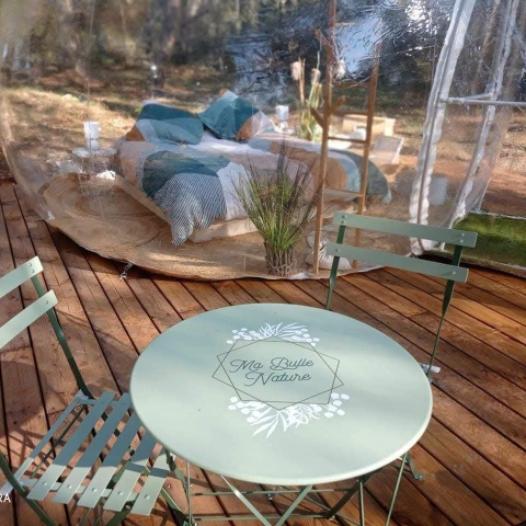 Notre bulle, installée en pleine nature, vous plonge dans une ambiance unique. Totalement transparente, elle vous offre une vue à 360.